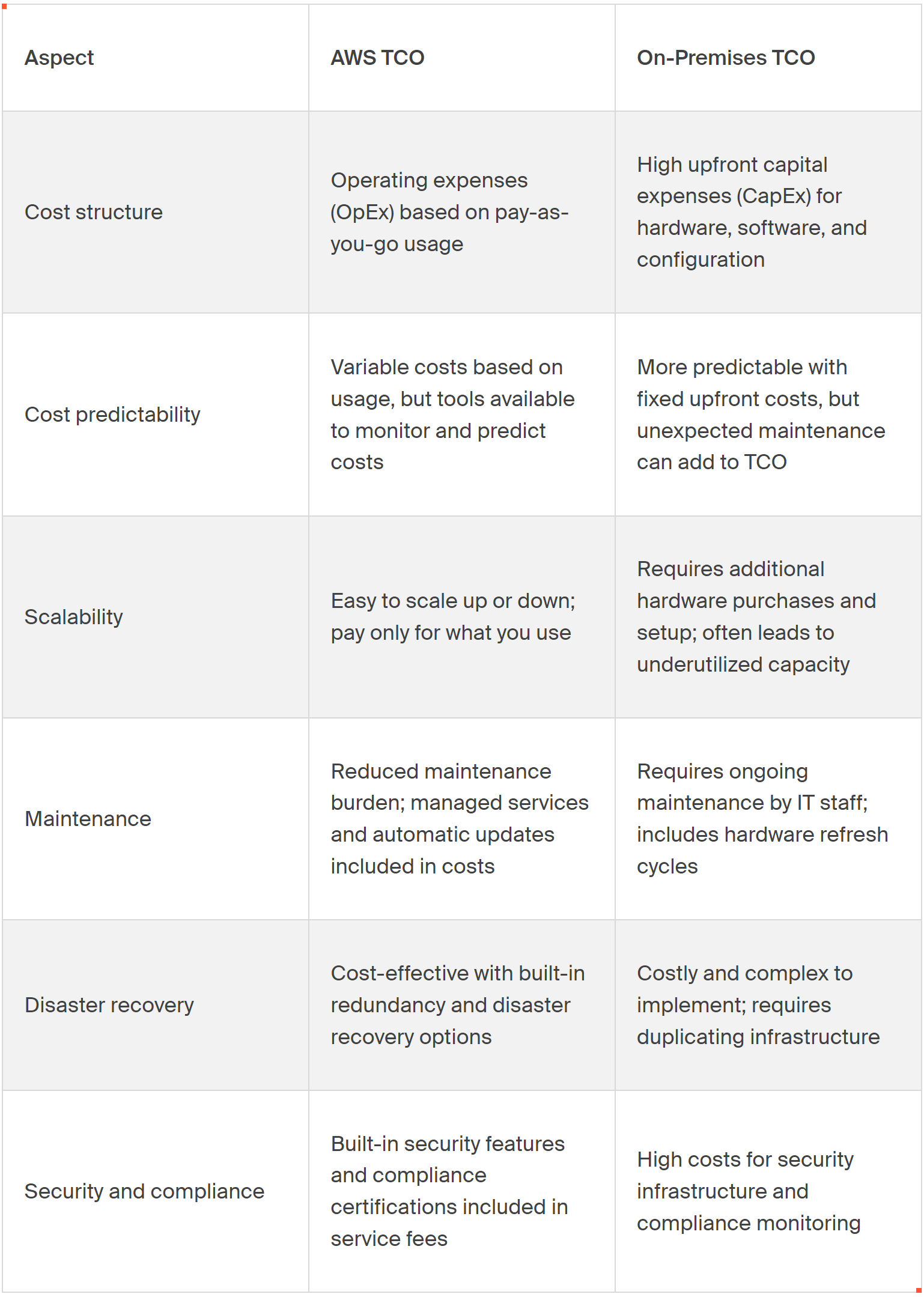 AWS TCO Vs. On-premises TCO